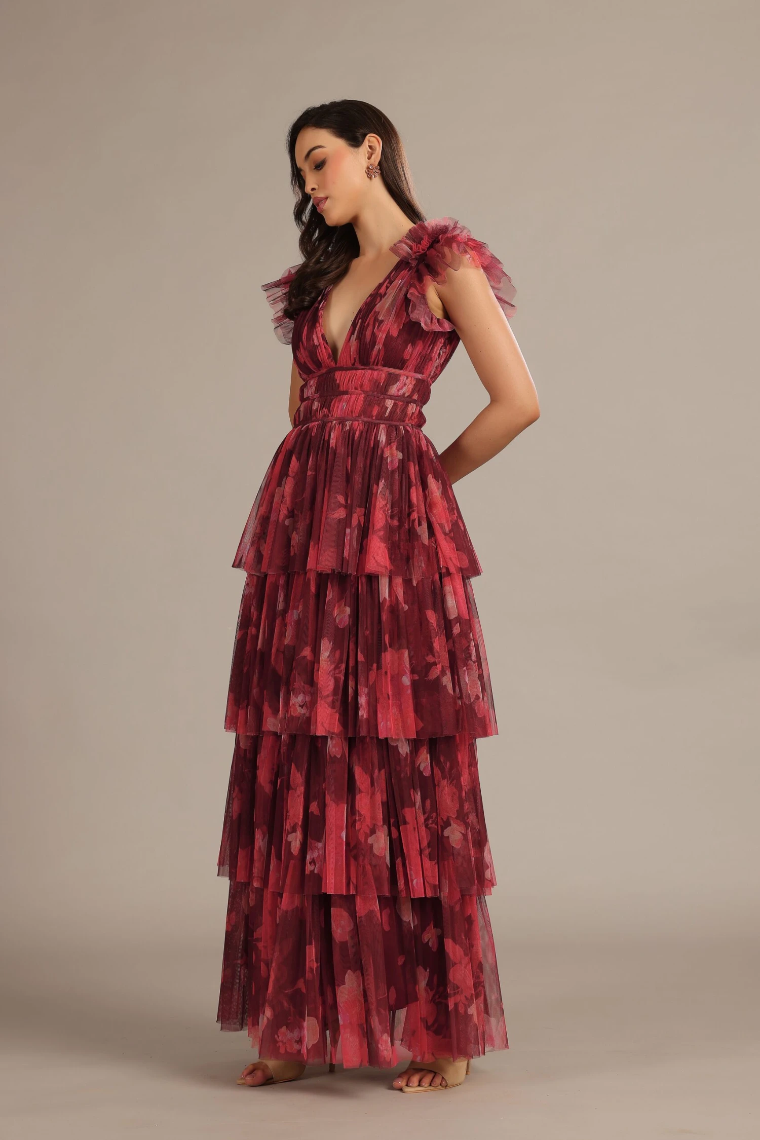 Lace & Beads Naomi Maxi Dress in Deep Red Floral. A romantic style made for standout moments. With soft tulle layers, a flattering V-neckline, and a fitted waistband, it creates a floaty, feminine shape that’s easy to wear. The rich red floral print adds a bold touch, while the tiered skirt brings beautiful movement. Whether it’s a wedding, special event or a summer evening out, Naomi is your go-to for looking effortlessly elegant with a little drama.
