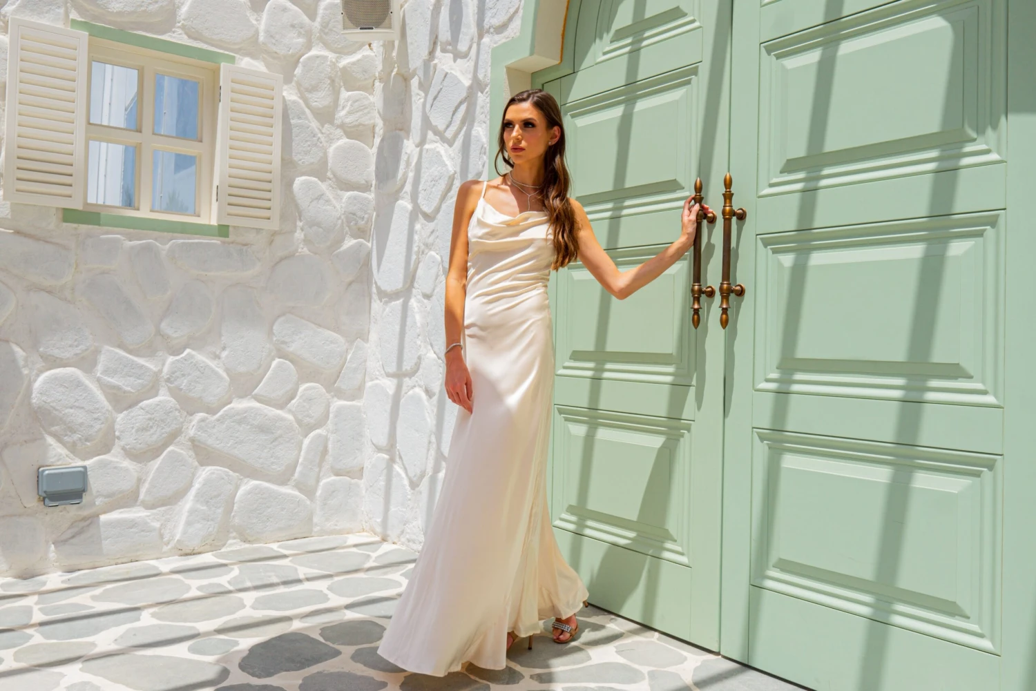 Crafted in a blush, satin, bias cut maxi dress. This vintage-inspired style is made to turn heads, with a cowl cowl-neck and figure-skimming bias cut. The perfect dress for that special event. Cowl neck. Sleeveless design. Bias cut. Maxi-length.