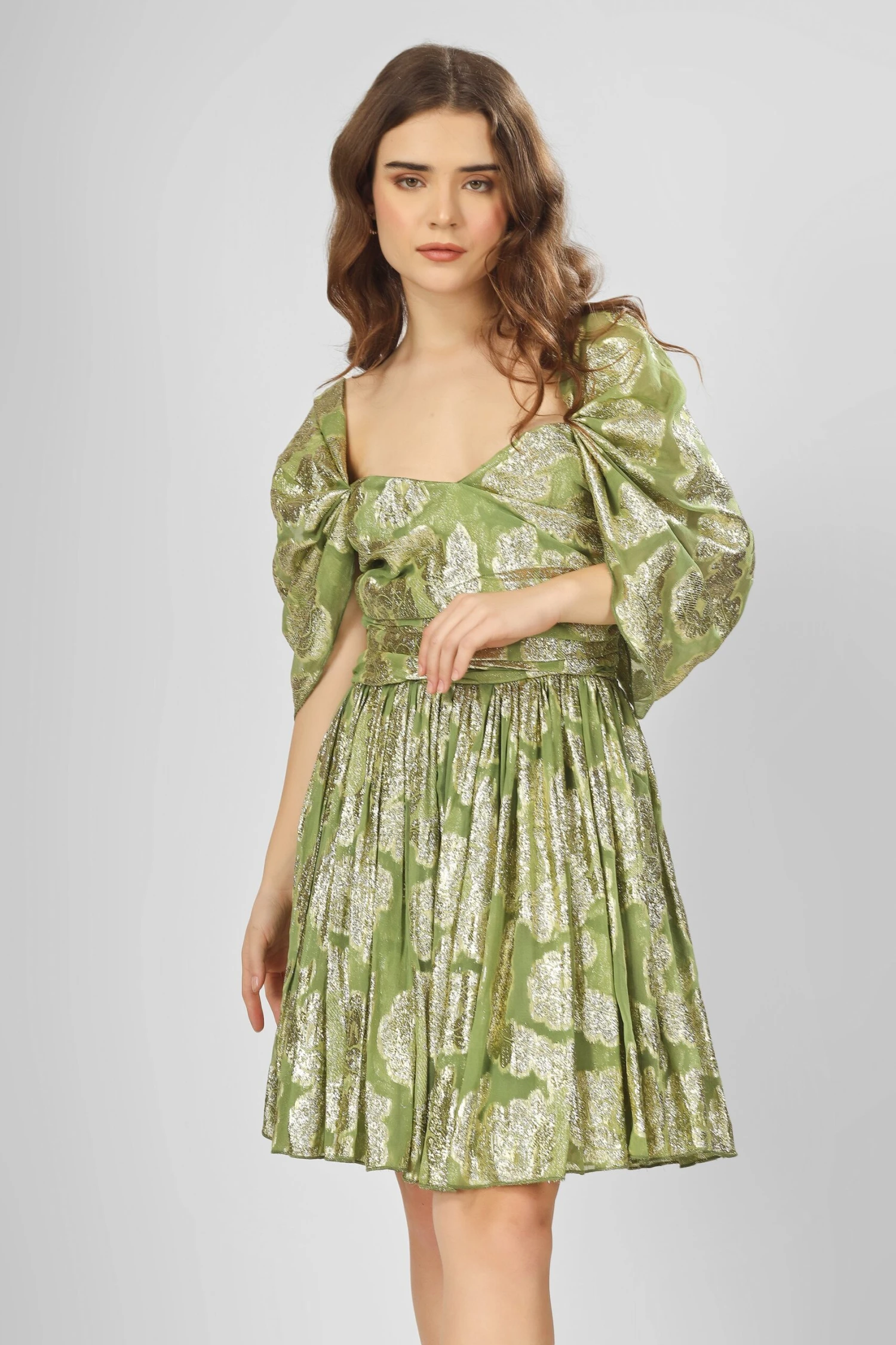 Whether you’re attending a wedding, a summer party, or a special occasion, this green-printed dress is a show-stopping choice that is sure to leave a lasting impression.